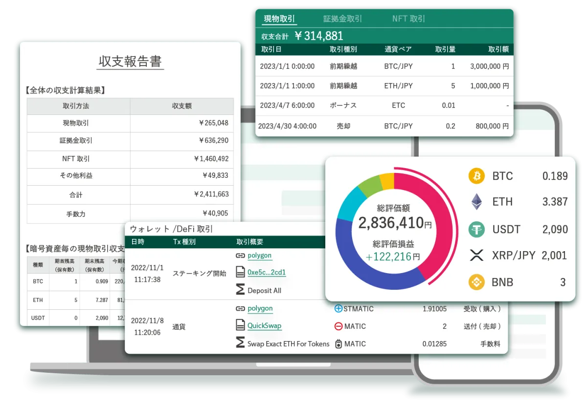 クリプトリンクは、暗号資産の損益計算と管理を行う国内で唯一の特許取得済みサービスです。2017年の設立以来、累計1,000社以上の法人や会計事務所に導入され、数万人の個人ユーザーからも支持を受けています。月額330円(税込)という低コストで利用でき、国内外の取引所、DeFi、NFTにも対応しているのが特徴です。つまり、ユーザーは低コストで高機能なサービスを享受できるのです。
