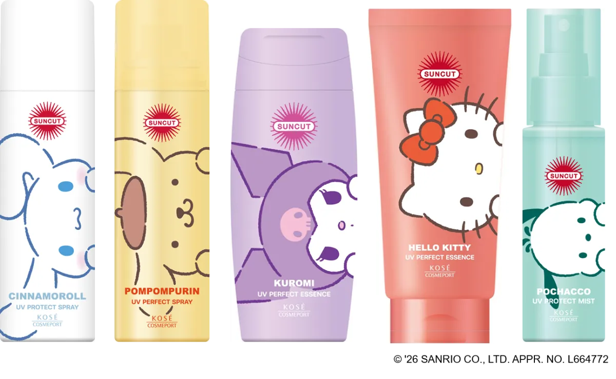 2024年2月2日より、人気の日やけ止めブランド『サンカット®』が、昨年に引き続きサンリオとコラボレーションした特別デザインパッケージを数量限定で発売することが発表されました。ターゲットとなるのはサンリオファンや、日やけ止めを可愛く持ち運びたいと考えるお客様。今回は、「シナモロール」「ポムポムプリン」「クロミ」「ハローキティ」「ポチャッコ」といったキャラクターたちがデザインされた5品目5種の商品が登場します。