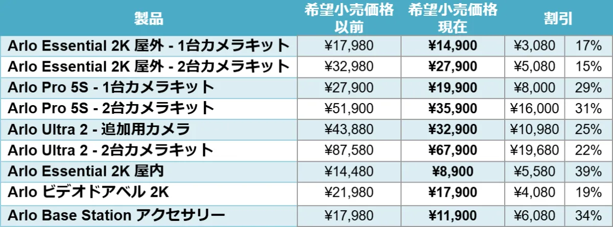2025年3月6日、東京において、スマートホームセキュリティのパイオニアであるArlo Technologies, Inc.が、一部製品における希望小売価格の見直しを発表しました。この改定により、ユーザーはArloの優れた監視技術を、より手頃な価格で手に入れることが可能になります。