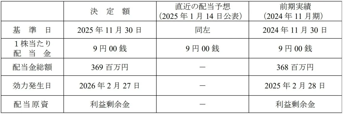 アステナホールディングス株式会社は、2026年1月13日に開催予定の取締役会で、2025年11月30日を基準日とした剰余金の配当を行うことを決議しました。この決定は、2026年2月26日に行われる第86回定時株主総会で正式に承認が求められます。