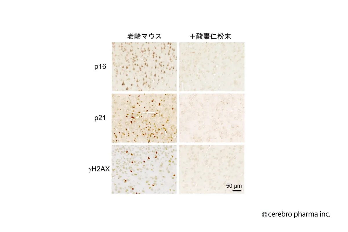 さらに、酸棗仁を単純に粉砕しただけでも、より強力な脳病理改善効果が観察されました。実験では、認知症モデルの老齢マウスに投与したところ、脳細胞の老化が抑制され、認知機能が正常な若齢マウス同等まで向上しました。