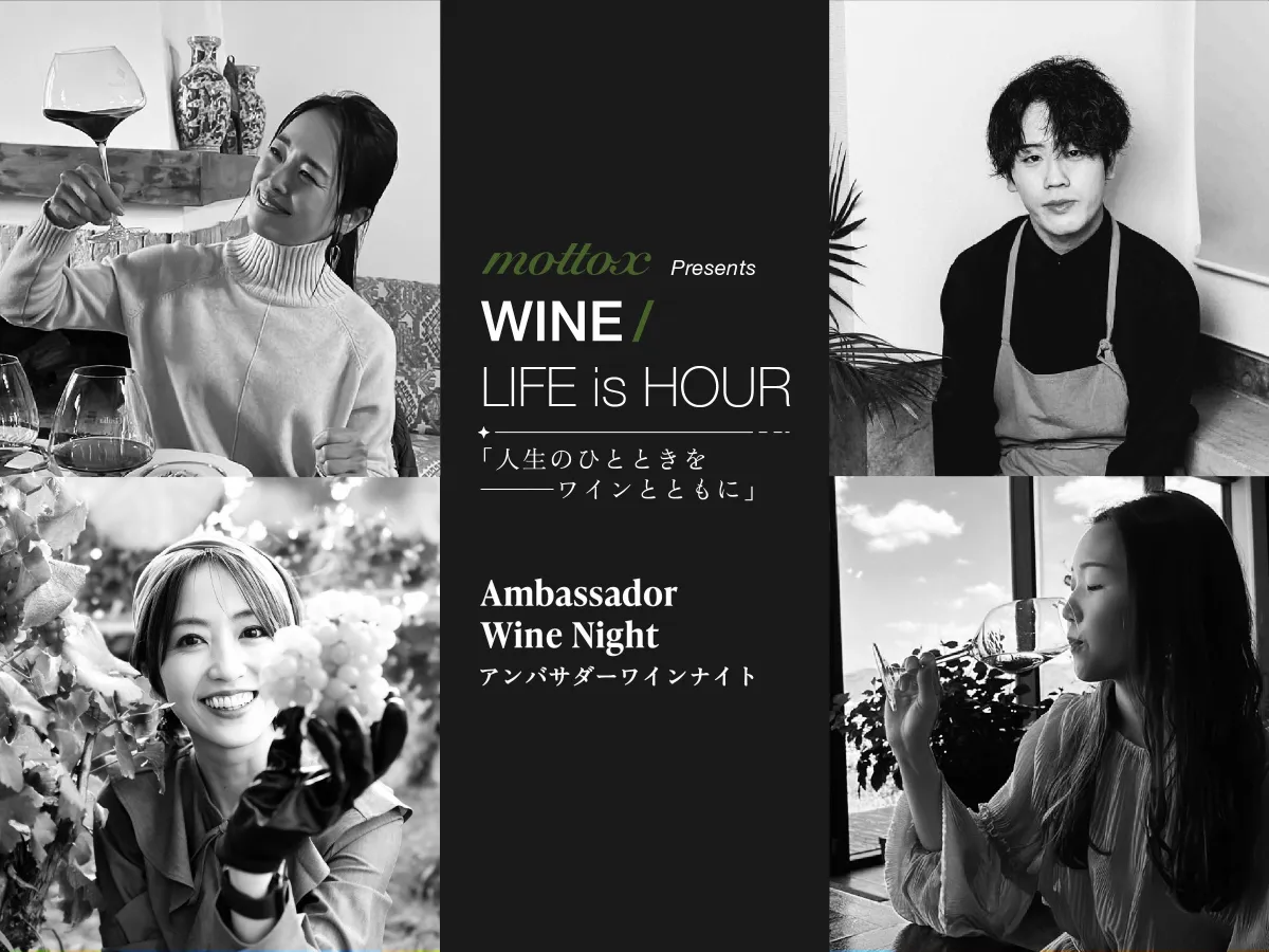 2025年12月5日、東京の代官山にて特別イベント『MOTTOX Presents WINE/LIFE is HOUR -人生のひとときをワインとともに-』が開催されます。モトックスが誇るワインアンバサダーが厳選したワインを楽しむこのイベントは、ただの試飲会ではありません。ワインにまつわるストーリーや想いを一緒に感じながら、参加者が自由に味わえる機会を提供します。