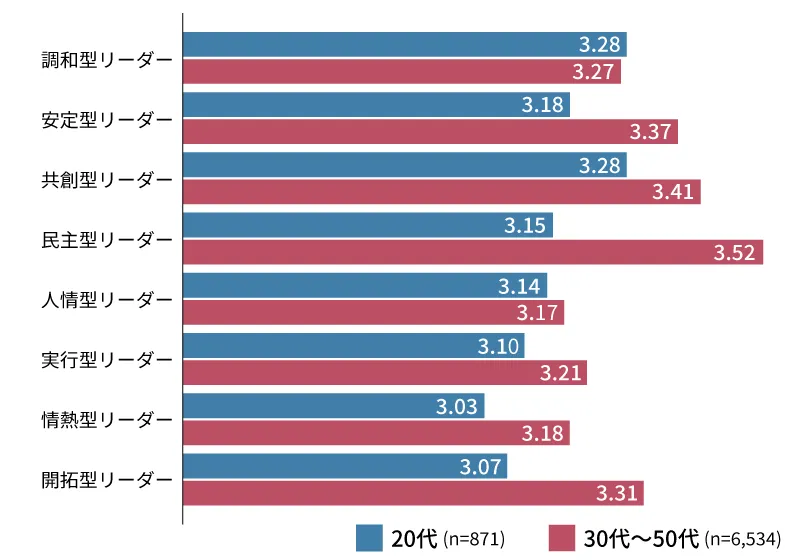 調査結果では、メンバーの年代によって求められる上司のリーダーシップスタイルが異なることも明らかになりました。特に、20代の従業員は感情に寄り添った支援を求める傾向があり、「調和型リーダー」や「共創型リーダー」を好む一方、30代以上では合理性を重視するおこうりのリーダーシップスタイルがより支持されています。これは、企業が人事政策を設計する上での重要な洞察を提供します。