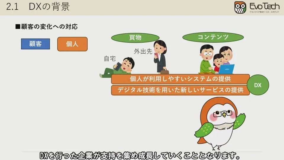 ケーススタディを通じてデジタル技術の活用方法について学び、DX推進に必要なマインドセットを育成します。