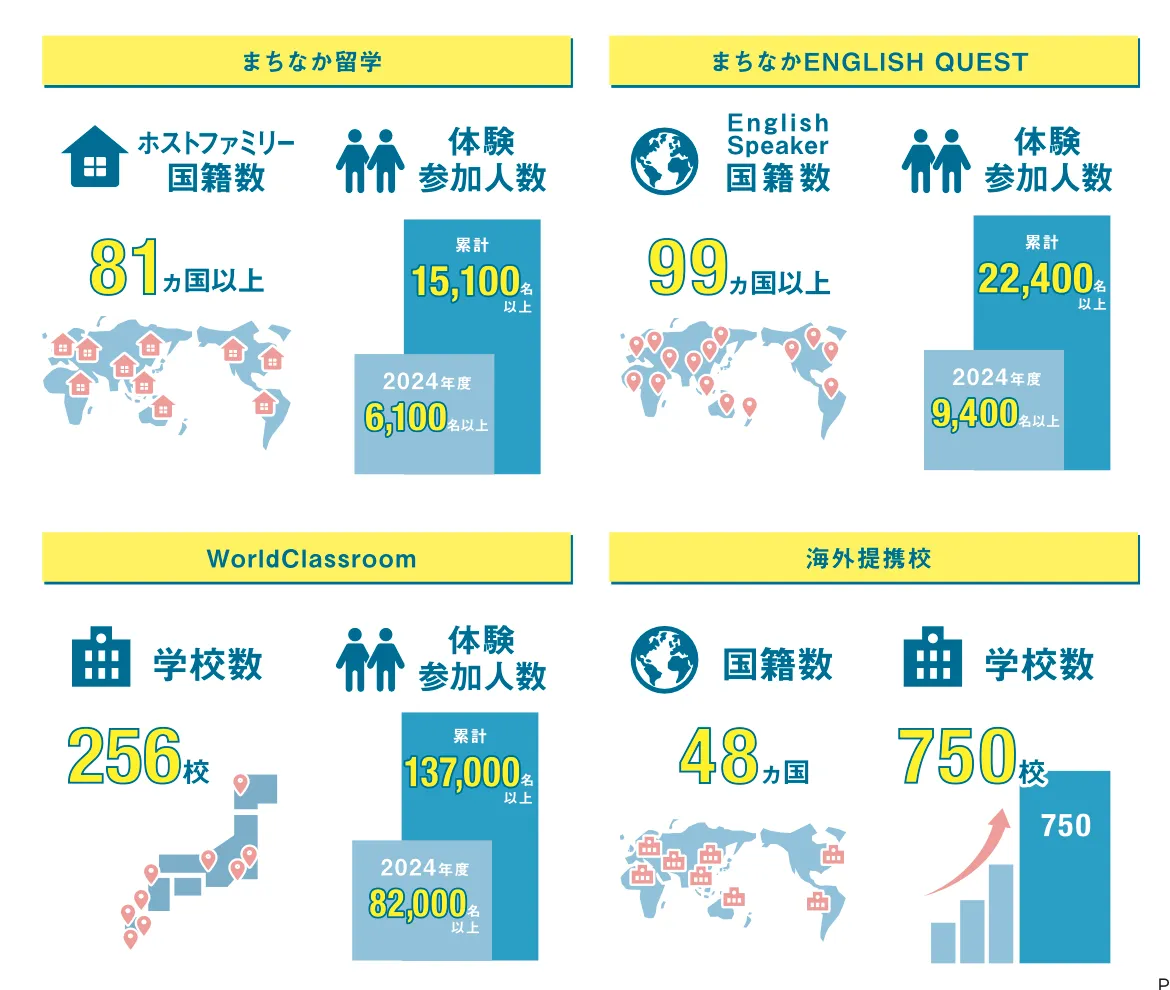 「まちなか留学」は、関東と沖縄で行われる週末ホームステイプログラムです。80ヵ国以上のホストファミリーが参加しており、単なる英語学習を超えた豊かな文化体験を提供します。ゲストは多様なバックグラウンドを持つ家族と交流し、さまざまな文化への理解を深めることができます。これによって、グローバルに活躍できる力が育まれます。