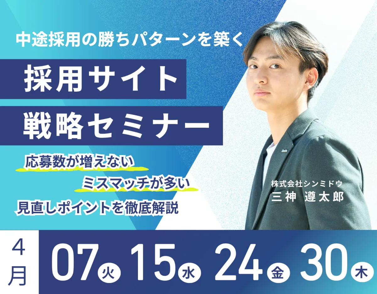 株式会社シンミドウは、4月に「採用サイト戦略セミナー」を計4日の日程で開催します。このセミナーは、全国の中小企業の経営者や営業、マーケティング担当者を主な対象とし、Zoomウェビナー形式で行われます。参加は無料です。この機会に、貴社の採用活動に役立つ貴重な知識を得てみませんか?