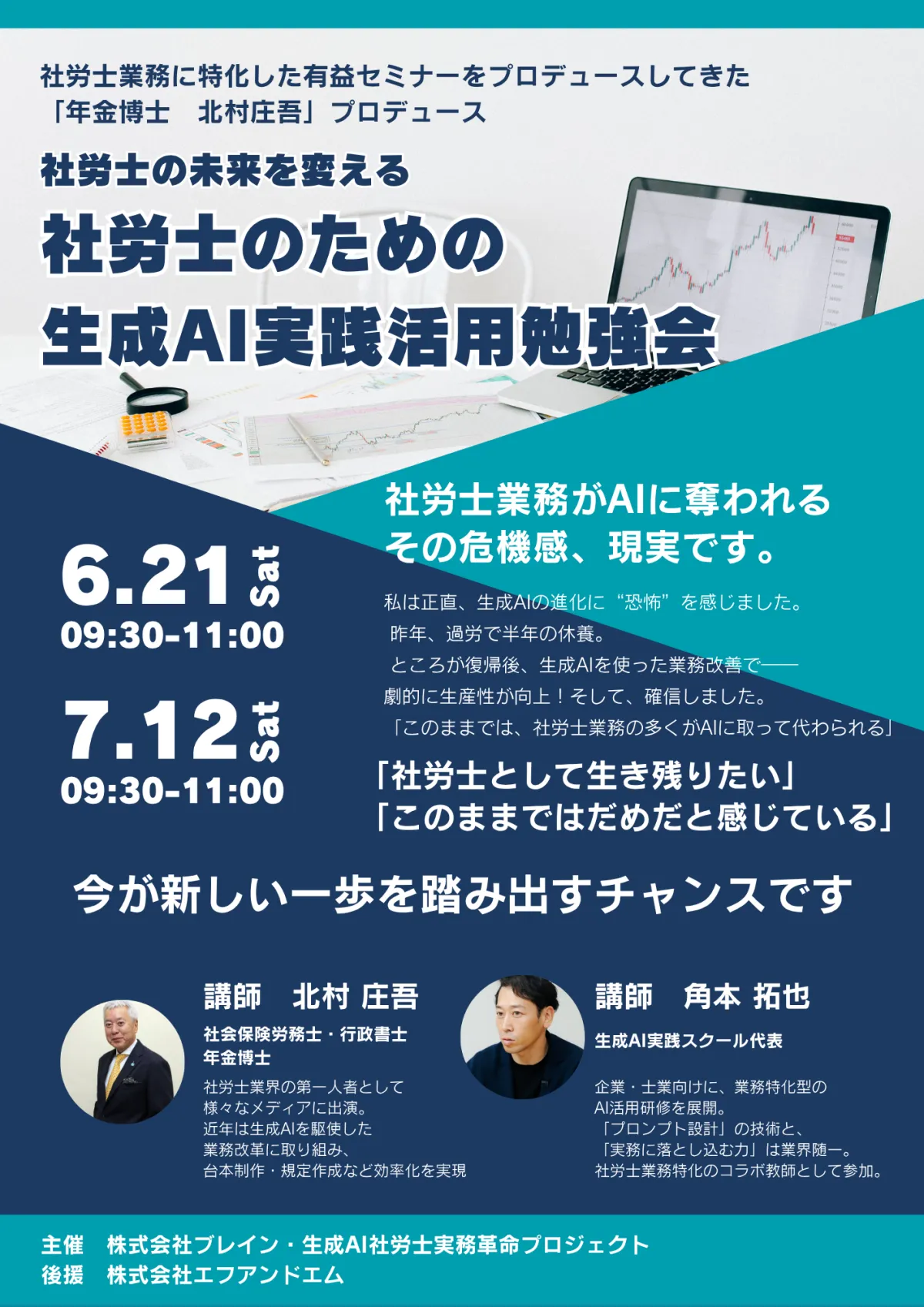 有限会社エキストラは、株式会社総合事務所ブレインとの共同で、社会保険労務士(社労士)業務に直結した「生成AI実践勉強会」を2025年9月より完全オンラインで開催することを発表しました。この勉強会は、社労士の業務効率化と革新を目的としており、生成AIの実践的な活用法を学ぶことができます。