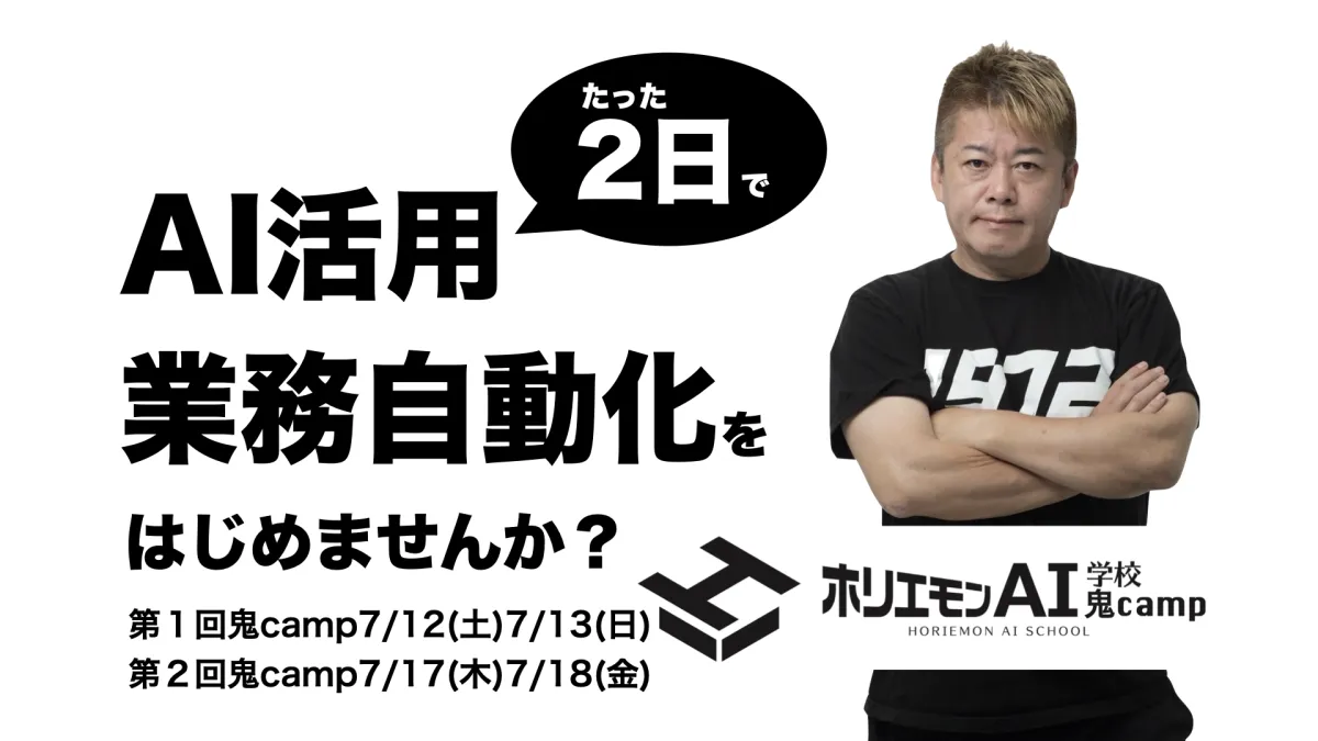 現代社会のビジネスシーンでは、AIの活用がますます重要なテーマとなっています。しかし、「AIの何がわからないか」すら見えていない経営者の方も多いのではないでしょうか。そんな経営者に向けた新たなオンライン研修が登場しました。その名も『ホリエモンAI学校鬼Camp』。ここでは、AIを活用した業務自動化の基礎をわずか2日間、14時間で徹底的に学べるプログラムです。
