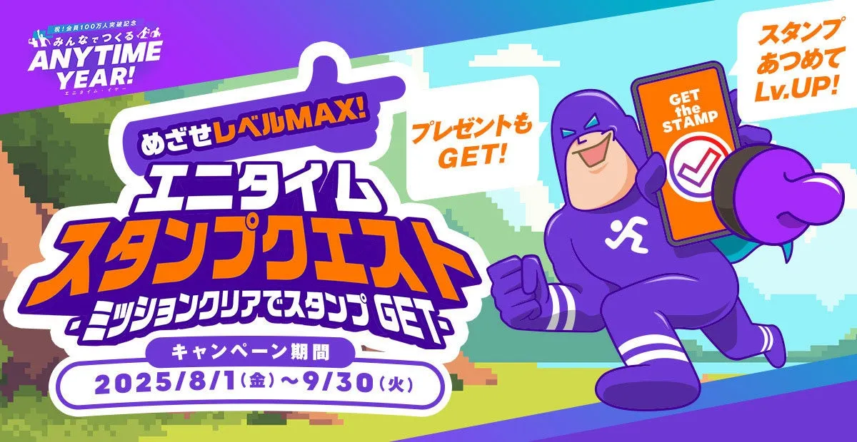 エニタイムフィットネスは、2025年8月1日から9月30日までの期間中に「めざせレベルマックス!エニタイム スタンプクエスト」を実施します。これは、エニタイムフィットネスの会員を対象とした特別なキャンペーンで、参加者は店舗でスタンプを集めることで、さまざまな特典を受けることができます。