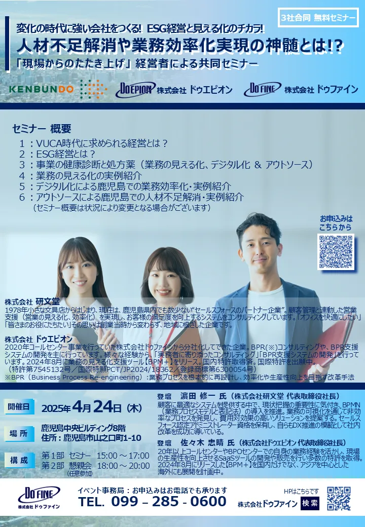 2025年4月24日、鹿児島市にて「人材不足解消や業務効率化」をテーマにした特別セミナーが開催されます。このセミナーは、経営者や管理職、業務改善に関心のある方々を対象にしており、鹿児島県内での人材不足問題を解決するための知識を提供することを目的としています。