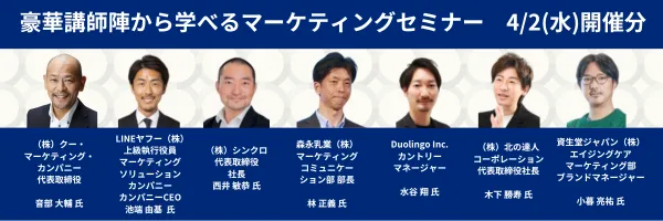 今回のセミナーでは、幅広いテーマが取り上げられています。各企業のトップが一堂に会し、成功したマーケティング戦略や実際の運用方法について講演します。例えば、クー・マーケティング・カンパニーの音部大輔氏が語る「マーケティング人材育成を戦略から考える」は、今後の組織づくりや人材育成戦略を探る上で非常に重要な内容です。