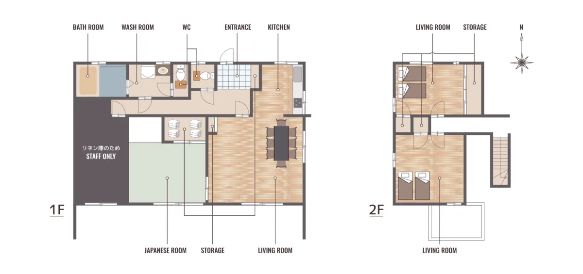「SHELTER.日光」は、家族旅行、友人との旅行、または三世代での滞在にも対応するようにデザインされています。特に、木の温もりを感じる広々としたリビングルームと、畳の香りが漂う和室は、素足で床に座るという日本の文化を体感できる空間が魅力です。まるで自分だけの別荘を持つような贅沢な経験が待っています。