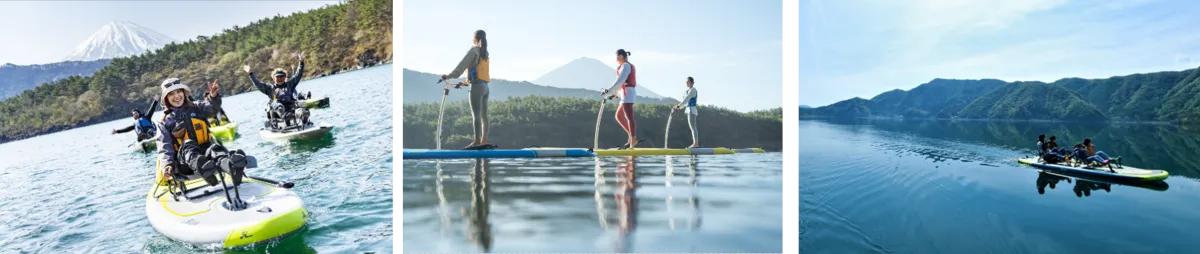 提携の目玉となるのが、カリフォルニア発の足漕ぎカヤック「HOBIE」です。安定性が高く、初心者でも安心して楽しめるこのカヤックは、水上でのヨガや読書、軽食を楽しむピクニックまで幅広く利用できます。自然に優しい設計ながら、心理的なリフレッシュやマインドフルネス効果も期待できる魅力的なアクティビティです。
