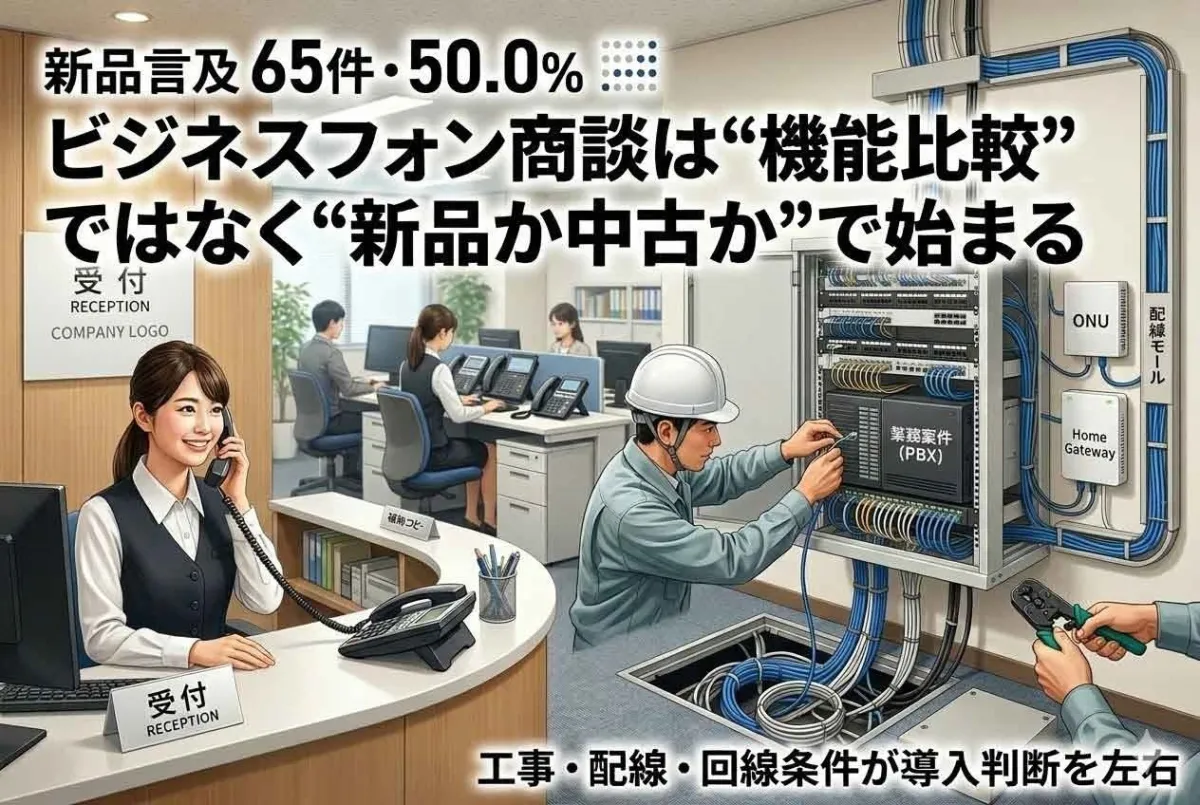 今回の調査結果は、ビジネスフォンの選定過程において、単にどの機種が良いかだけでなく、「新品か中古か」をまず考える必要があることを明るみに出しました。これは、通信設計や事業者の設備投資においても重要な視点となります。特に人手不足が顕著になる中で、電話対応の設計ミスが現場に大きな影響を与える可能性があります。
