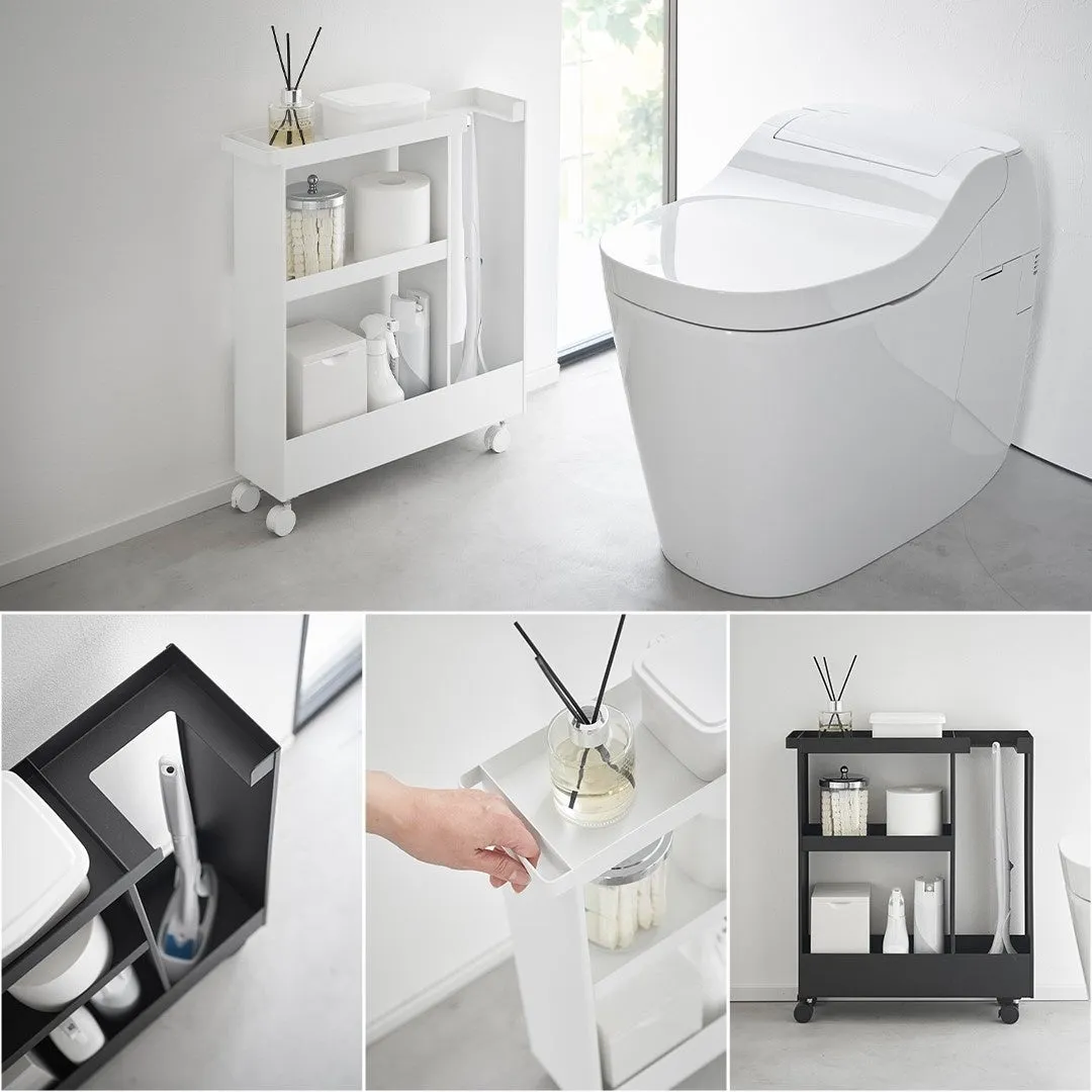トイレ空間をスッキリと整理整頓できる「キャスター付きトイレスリムワゴン タワー3段 タワー」