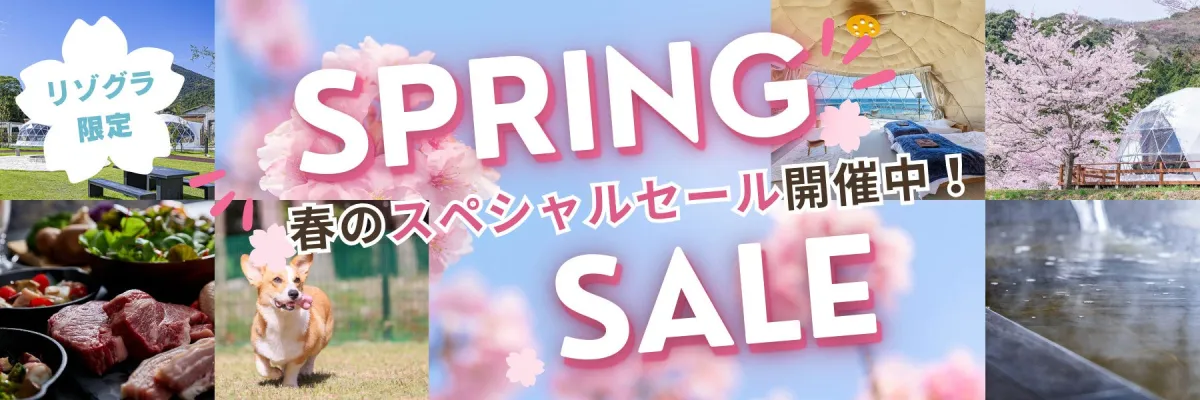 「Springセール」特集に掲載している、全国80以上のグランピング施設とリゾートヴィラが対象です。それぞれ異なる魅力があるため、様々な環境を楽しめます。