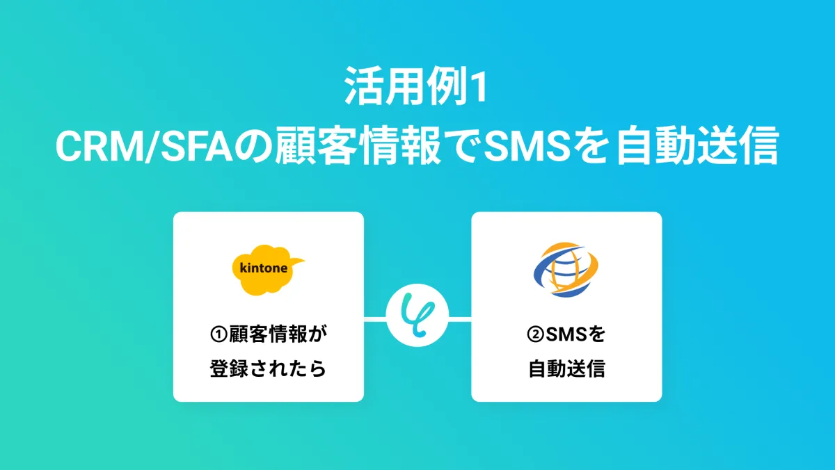 YoomとKYUSMSのAPI連携により、450種以上のツールと接続し、SMS送信に関わるさまざまな業務フローを自動化することが可能になります。この連携が実現する一例として、CRM(顧客関係管理)やSFA(営業支援システム)に保存された電話番号に自動でSMSを送信するフローがあります。このように、Salesforceやkintoneのような一般的なツールと連携し、営業やカスタマーサポートの仕事を効率化できるのです。
