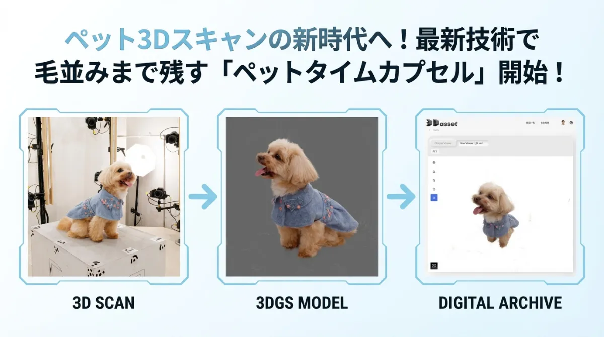 このサービスにより、飼い主は大切なペットとの思い出をデジタルでしっかりと保存し、いつでも手軽に振り返ることができます。さらに、個別にカスタマイズされた「フルカラー3Dフィギュア」などのオプションも利用できるため、ペットへの愛情をより具体的に形にすることができます。