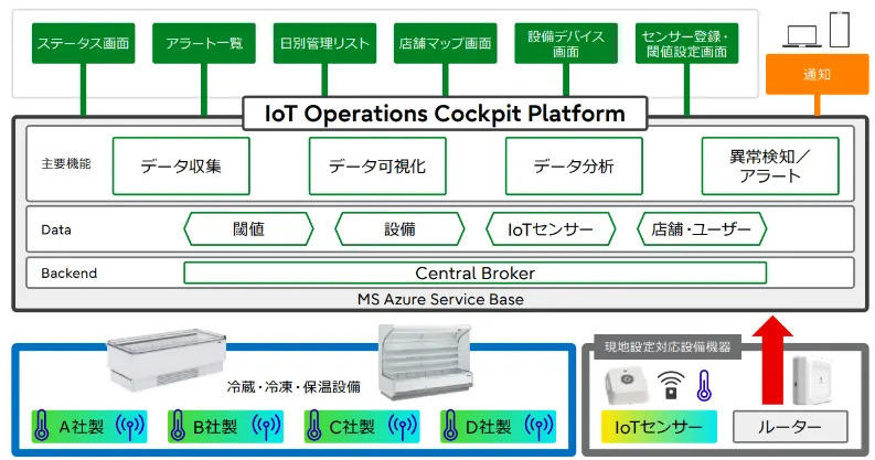 また、この取り組みはHACCP対応を強化するための重要な対策でもあります。冷蔵・冷凍設備の温度が閾値を超えた場合には、アラートが通知され、迅速な初動対応が可能になります。これにより、商品鮮度の管理が向上し、食品ロスの削減にも貢献することができます。