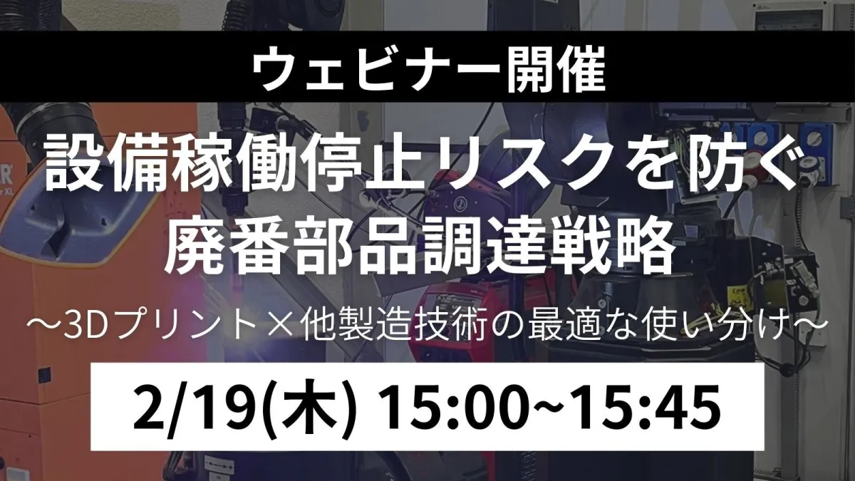 株式会社MadeHereは、設備の運用維持においてますます深刻化する廃番部品の調達問題に対処するため、無料のオンラインウェビナーを開催します。このウェビナーは「設備稼働停止リスクを防ぐ廃番部品調達戦略 ~3Dプリント×他製造技術の最適な使い分け~」をテーマに、2026年2月19日(木)15:00から行われます。