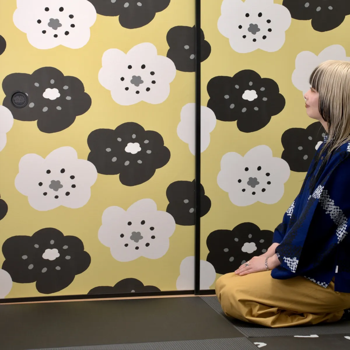 このプロジェクトで注目すべきは、SOU・SOUが持つ遊び心のある独創的な柄と色使いです。例えば、「SOU・SOU襖ほほえみ芥子色(からしいろ)」は、ポップでありながらも落ち着きのあるデザインで、伝統的な和室に新たな息吹を与えます。引手にはSOU・SOU家紋が施され、細部にまでこだわりぬかれています。また、SOU・SOUのテキスタイルを使った「畳SO-SU-U濡羽色(ぬればいろ)」や、光を柔らかく取り込む「SOU・SOU障子SO-SU-U五色(ごしき)」も、現代のインテリアライフスタイルにピッタリのアイテムです。