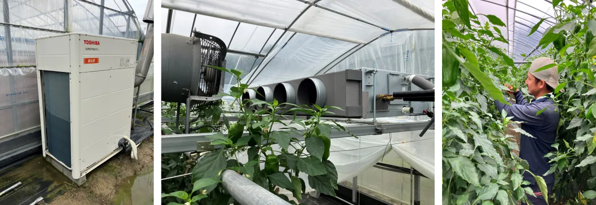 EHPは暖房だけにとどまらず、冷房としても機能し、簡単に温度管理ができる点が魅力です。近年の猛暑により、高温が農作物に与える影響が懸念されています。例えば、あるトマト農家ではEHPを使い、ハウス内の温度を調整することで、作物の糖度向上に成功しています。ピーマン栽培では、夏の夜間温度を約20℃に保つためにEHPが不可欠です。このように、EHPは作物ごとの特性に応じた温度管理を可能にし、農業の生産性を高めています。
