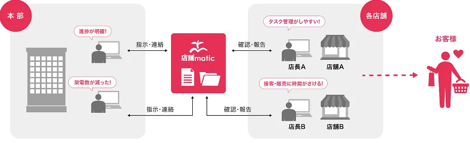 - - タスク管理の負担軽減: 作業指示が期限付きで表示されるため、店舗スタッフは管理業務が楽になりました。