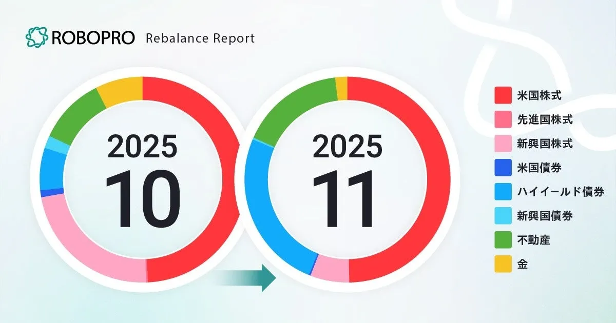 株式会社FOLIOホールディングスが展開するAI投資サービス「ROBOPRO」において、2025年10月29日に行われた投資配分の変更が注目を集めています。今回の変更では、米国株式を主軸にしながら、ハイイールド債券と不動産の比率を増やし、相対的に新興国株式や金の配分を減少させる新たな方針が打ち出されました。