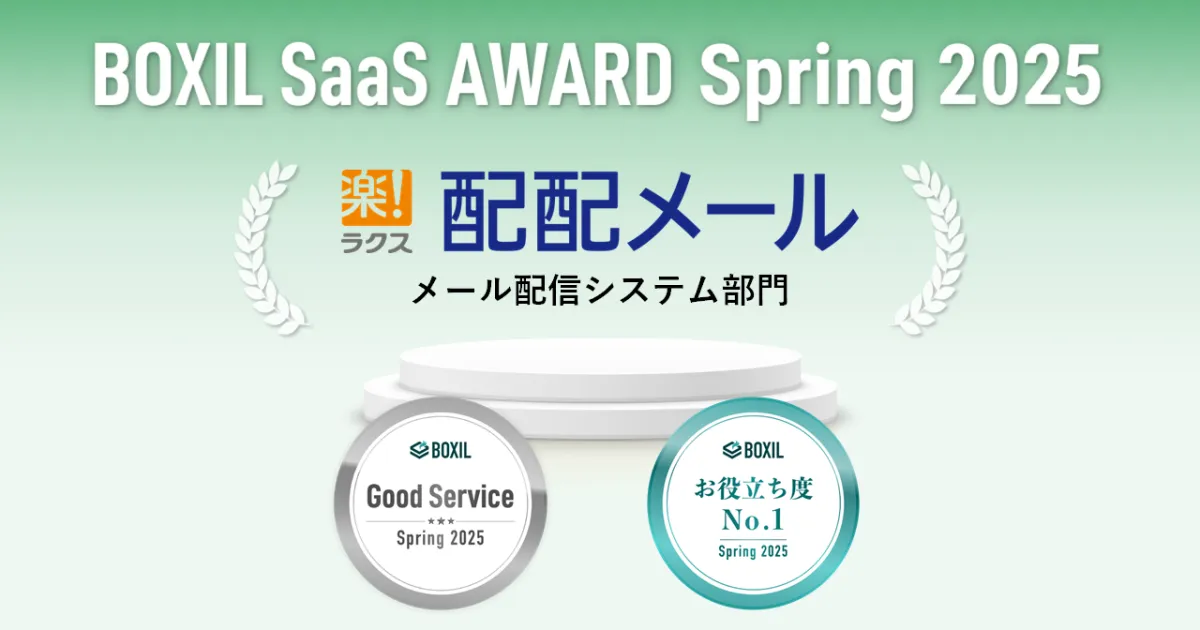 メールマーケティングのリーダーとして知られる『配配メール』が、スマートキャンプ株式会社が主催する「BOXIL SaaS AWARD Spring 2025」において、メール配信システム部門で「Good Service」及び「お役立ち度No.1」に選ばれました。これは、同サービスの有用性や利便性が際立っていることを示す重要な評価です。