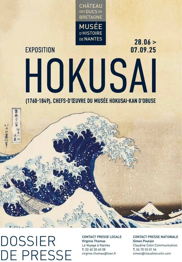 フランスのナント市で、今年の夏の主要イベントである「ボヤージュ・ア・ナント」の一環として、「北斎(1760-1849)小布施北斎館の名作」展が開催されています。期待の高まるこの展覧会は、6月28日から9月7日までの期間中、ブルターニュ大公城とナント歴史博物館で行われ、北斎の魅力を余すところなく展示しています。
