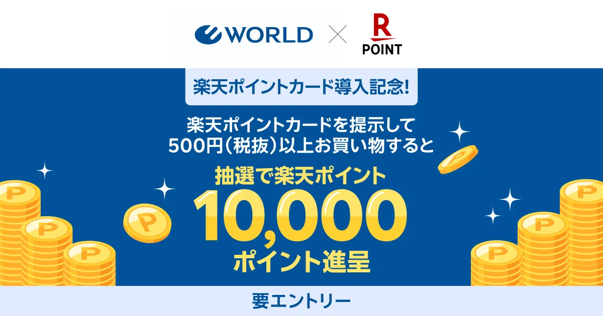 導入を記念した一大キャンペーンも行われます。「ワールド 楽天ポイントカード導入記念!総額100万ポイント抽選キャンペーン」が2026年2月10日から2月28日まで開催され、参加者は500円(税抜)以上の支払いをすることで抽選にエントリー可能です。抽選選ばれた100名には、なんと10,000ポイントが贈呈されます。このチャンスをぜひ逃さずに活用したいです。