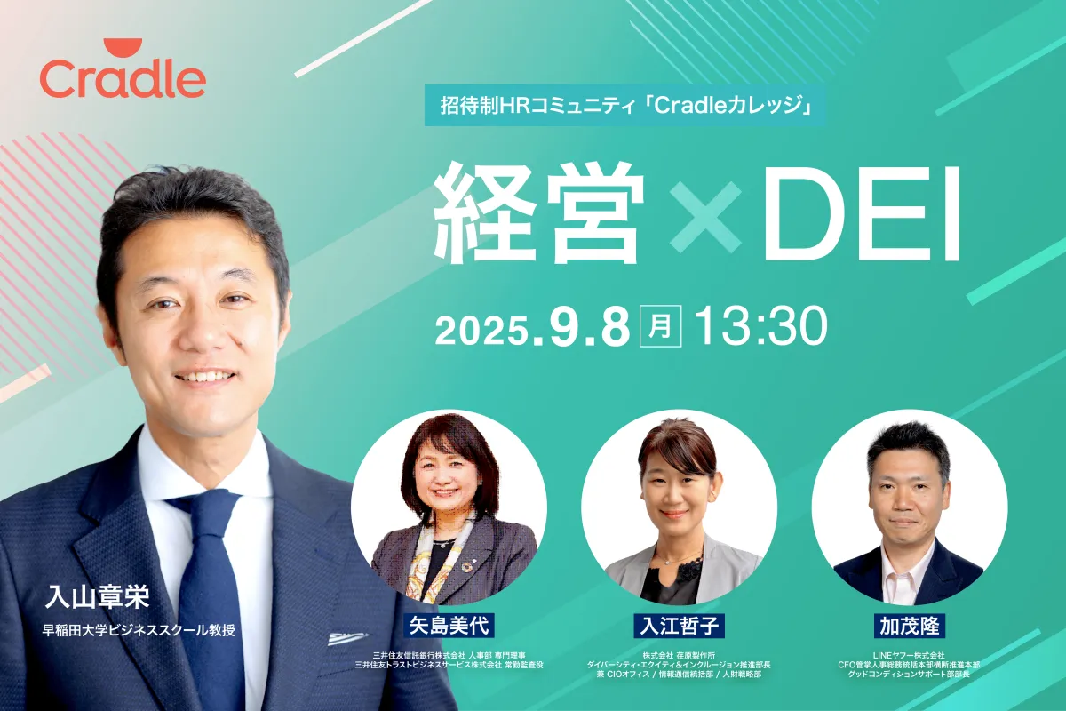 2025年9月8日、株式会社Cradleが招待制のHRコミュニティ「Cradleカレッジ」を東京・丸の内で開催します。このイベントは、従業員の健康やウェルビーイング、そしてダイバーシティ・エクイティ・インクルージョン(DEI)に焦点を当てた活動を展開する同社が主催。このカレッジでは、経営戦略の一環としてDEIを再定義し、組織の競争力を高めるための方策が議論されます。