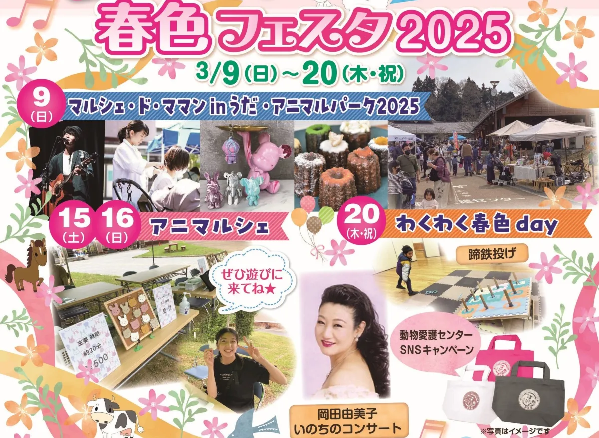 うだ・アニマルパーク振興室が主催する「春色フェスタ2025」は、春の訪れを祝う魅力たっぷりのイベントです。令和7年3月9日から20日までの期間中、来園者が楽しめる様々なアクティビティや体験が用意されています。