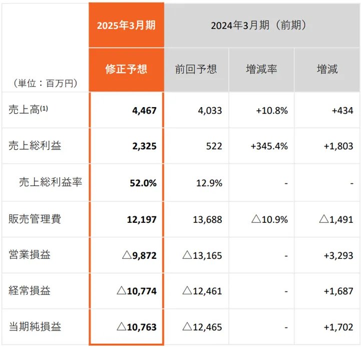 また、売上総利益は2,325百万円と予想され、Q4に前倒しで計上されることになりました。営業損益は-9,872百万円で、主にミッション3関連の費用の影響を受けています。当期純損益は-10,763百万円に達し、SBIR補助金の入金遅延や固定資産の減損が影響しています。
