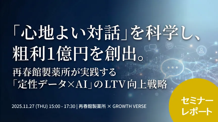 2025年11月27日、株式会社GROWTH VERSEは再春館製薬所を招き、福岡県の電気ビル共創館にて「AIが実現する“心地よい対話”とは」をテーマにしたセミナーを開催しました。このセミナーは、九州エリアの通販やD2C企業の経営層、マーケティング責任者を対象に、多くの参加者が集まり、大盛況で幕を閉じました。