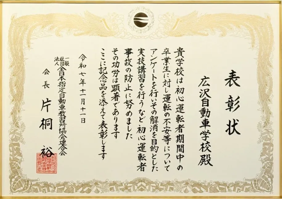 今回の表彰は、広沢自動車学校が単に事故を防ぐのではなく、「事故を起こさない運転行動を根付かせる」という目標に向けての取り組みが認められた結果です。