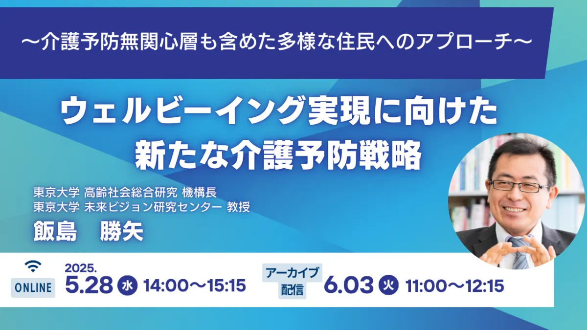 本セミナーには、フレイル予防の第一人者である飯島勝矢氏が登壇します。飯島氏は東京大学で高齢社会総合研究機構長を務めつつ、「幸福長寿」という概念を提唱し、全国100以上の自治体で住民主体のフレイルチェックを推進してきました。メディアや政府委員会でも活躍し、介護予防の未来像を牽引する彼の洞察は、参加者にとって非常に価値のあるものとなるでしょう。