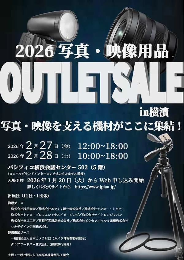 神奈川県横浜市にて、写真や映像関連用品の特別セールが開催されます。このイベントは、「写真・映像用品アウトレットセールin横濱」として、株式会社焦点工房の参加のもと、実施されます。セールでは、各種高品質なカメラ用品とその関連商品を、通常よりも大幅に割引された特別価格でご提供します。