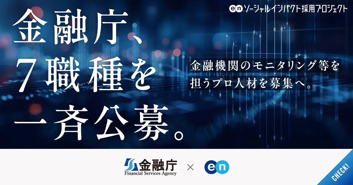 2026年1月22日、エン株式会社は金融庁の『ソーシャルインパクト採用プロジェクト』をスタートしました。このプロジェクトは、金融システムの健全性を守るために不可欠な人材を求め、7職種を一斉に公募するものです。これにより、金融行政の根幹を支える役割を担う専門職を広く募集します。