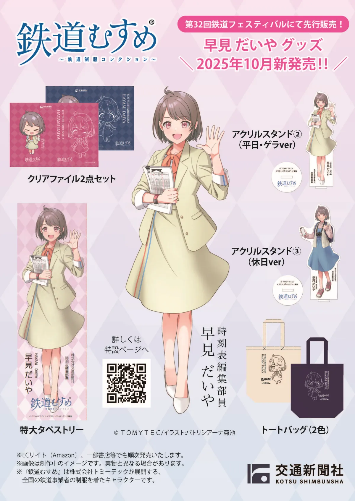 鉄道ファンやキャラクターグッズ愛好者にとって、注目の情報が舞い込んできました。株式会社交通新聞社が展開する『鉄道むすめ』から、早見だいやの新作グッズ第2弾が発表されました。2025年10月11日(土)・12日(日)に開催される「第32回鉄道フェスティバル」にて、先行販売が行われます。