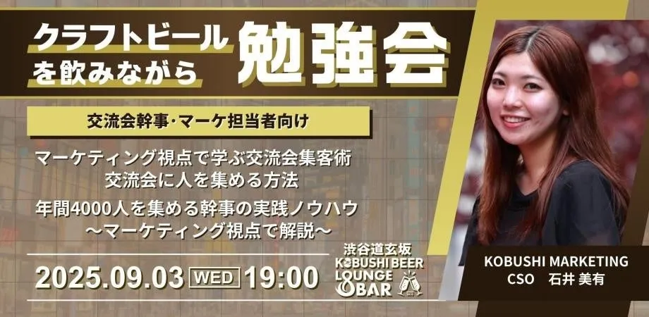 2025年9月3日、水曜日の午後7時から、東京・渋谷で「交流会集客のマーケティング」と題した勉強会が開催されます。このセミナーの主催は、KOBUSHI MARKETING合同会社で、代表の井上裕介氏の指導のもと、マーケティングの視点から交流会の集客術を学ぶ機会となっています。