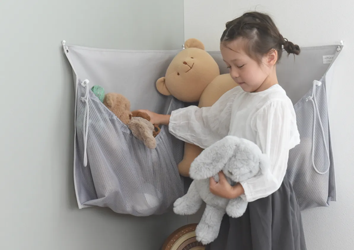 子どもにとって、ぬいぐるみは大切な友達です。遊びのお供として、外出時にも一緒に持ち歩くことが多いこちらのアイテムは、収納の際にも役立ちます。ぬいぐるみ ウォールポケットは、蓋がないポケット型なので、子どもたちが自分で簡単にお片付けができるのが魅力です。ポケットに置くだけで片付けが完了するので、自然とお片付けの習慣も身につきます。