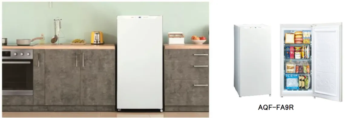 「AQF-FA9R」のサイズは小型ながらも多くの機能を備えています。キッチンだけでなく、リビングや寝室など他の場所にも容易に設置できるため、使う人のライフスタイルに合わせて自由に配置可能です。冷凍庫を初めて購入する方にもおすすめで、導入しやすさに配慮された設計が魅力です。