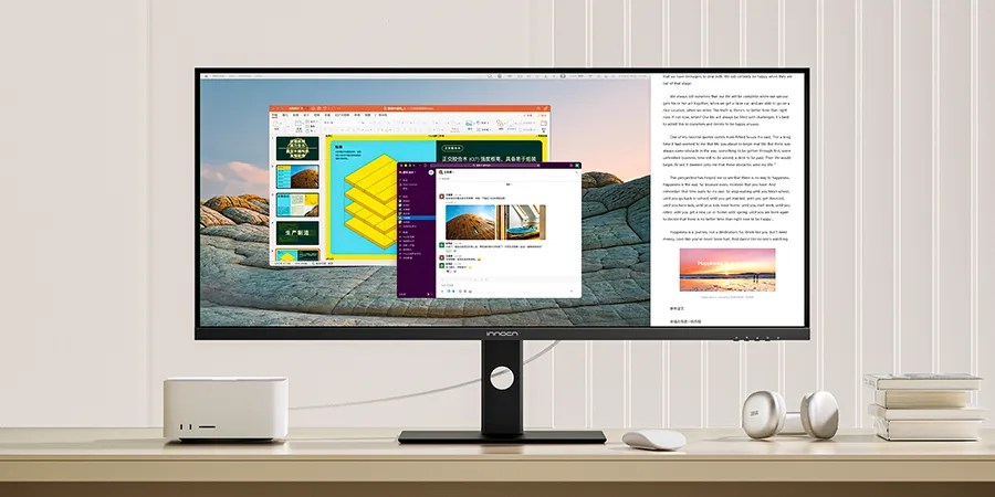 多様なデバイスに対応するため、INNOCN 40C1UにはUSB Type-C給電ポート、HDMI 2.1、DP1.4を装備。これにより、MacBookやゲーム機、高性能PCなど、さまざまなデバイスとの接続が容易です。一つのケーブルで電源、データ通信、映像出力が行えるため、デスク周りもすっきり整頓できます。さらに、内蔵されたUSBハブとスピーカーによって、オールインワンの作業環境が構築可能です。