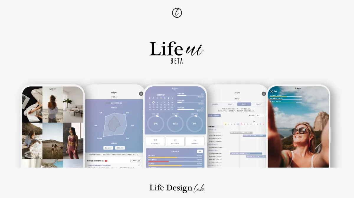 『Life UI』は、ライフデザインのすべてを一つのプラットフォームで提供します。このツールは単なる目標管理ではなく、「自分を知る」「理想を描く」「夢/目標を抱く」「計画を立てる」「行動する」「状態を知る」といった要素を完全にサポートします。サービス全体がゲームのように構成されており、誰でも楽しくライフデザインに取り組める工夫がされています。
