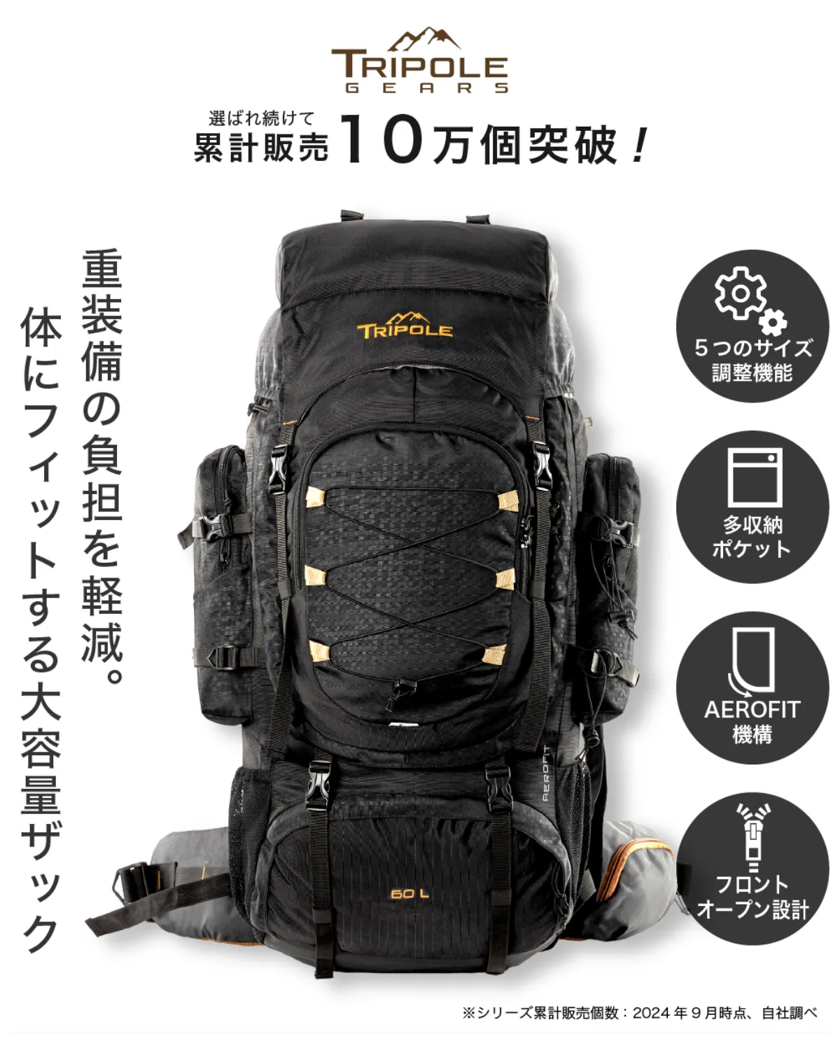 登山の楽しみは、自然の中での冒険や達成感ですが、長時間の登山では、その楽しさを台無しにする"疲労"や"体への負担"が大きな課題になります。そんな悩みに立ち向かうために、Amazonでトップシェアを誇る登山ギアブランド、Tripoleが新たに開発したのが、重装備にも対応できる新型ザック『Tripole ザック 60L』です。このザックは、2025年4月に販売を開始予定で、多くの登山者の期待を集めています。