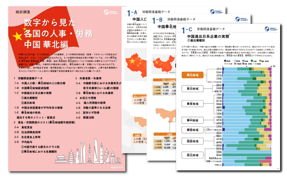インサイトアカデミー株式会社は、グローバル人材育成に関与する皆様に向けて、中国の華北地域に関する詳細な人事・労務データを無料で公開しました。このレポートは、特に北京市、天津市、河北省、山西省、内モンゴル自治区という地域に特化しており、最新のデータを元にした内容が盛り込まれています。