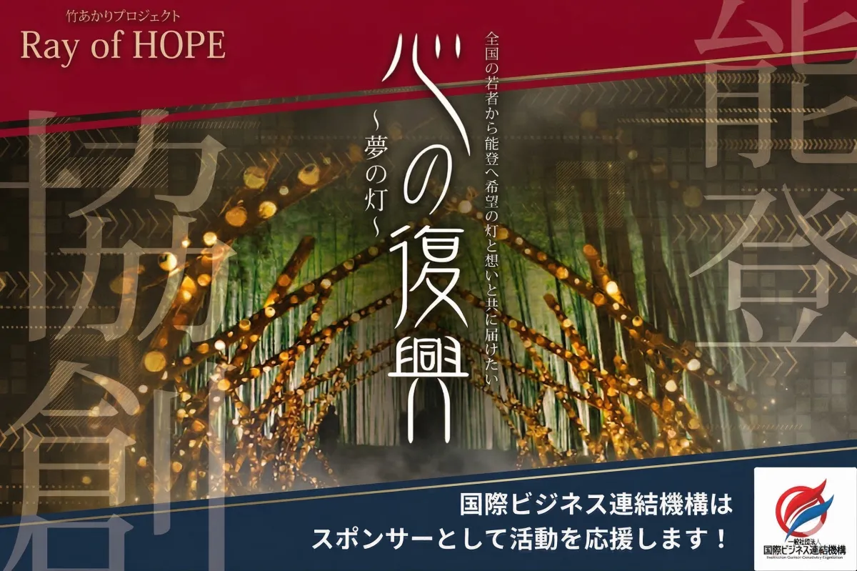このプロジェクトは、一般社団法人国際ビジネス連結機構と一般社団法人Super Giversの協力によって実現しました。「竹あかり」は全国の若者や地域住民が協力して制作し、石川県珠洲市に集結させることで希望の光をともします。これはただのアートではなく、地域を超えた「人の繋がり」の象徴でもあります。
