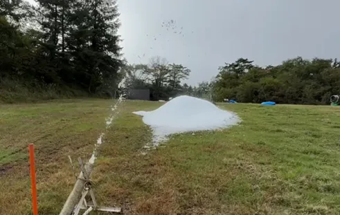 気象庁が発表した予報によると、全国の残暑は10月いっぱい続く見通しです。それでも、軽井沢プリンスホテルスキー場は寒さに負けず、24時間稼働する造雪機を用いて雪を作る準備が整っています。10月7日までの間は2基の造雪機が稼働し、その後8基全てをフル稼働させる予定です。これにより、一日あたり約450トン、28日間で約6,000㎥の雪を造ることが見込まれています。