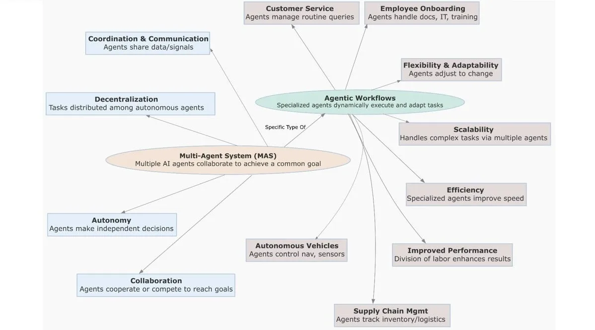 「エージェンティックワークフロー」とは、複数のAIエージェントが協力し合い、自律的に業務を遂行する先進的な自動化技術を指します。従来のRPA(ロボティック・プロセス・オートメーション)やルールに基づく自動化手法とは異なり、AIエージェント同士がタスクを分担・調整し、フィードバックを行うことで、より柔軟かつ高精度な業務プロセスを可能にします。これは、従来の方法では達成できなかった業務の俊敏性やコスト削減を実現します。